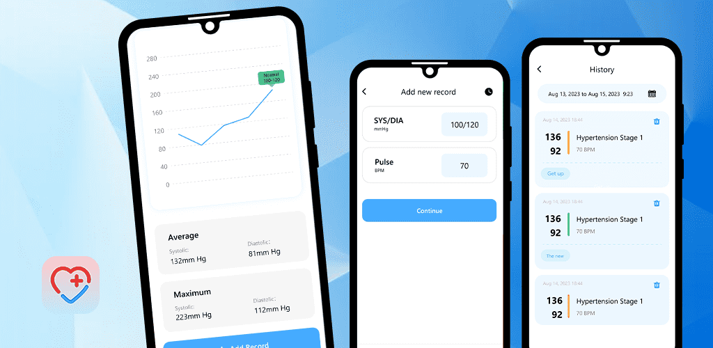 Using the Blood Pressure App, you can grasp your Blood pressure condition fully under different states (lying, sitting, before/after meal, etc.).